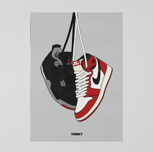 Artwork Air Jordan 4 Bred & Air Jordan 1 Retro High OG Lost & Found